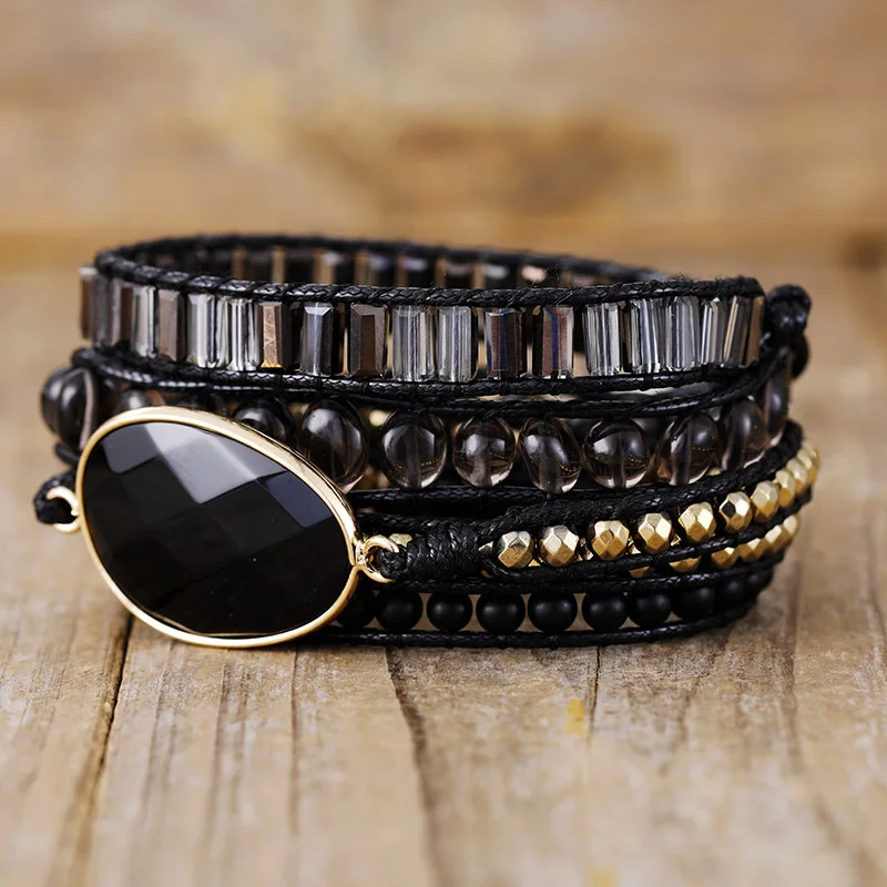 Beschermingsarmband – Boho Zwarte Steen Wikkelarmband